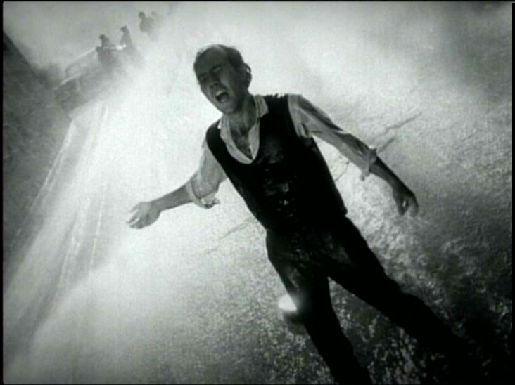 Wenn ich mich nach der Fokalisierung nun der subjektiven Tonperspektive, dem zweiten Unterpunkt des fokalisierten/enden Tons zuwende, so führt dies einerseits zu einer Erweiterung dieses Begriffs und andererseits zu einer Ausdifferenzierung und Präzisierung der verschiedenen Formen des fokalisierten/enden Tons im Vergleich miteinander. Zur subjektiven Tonperspektive sind Ausschnitte aus M (Fritz Lang, 1931) und aus Soy Cuba (Mikhail Kalatozov, 1964) gruppiert, die beide offenbar den subjektiv von einer Figur wahrgenommenen Ton wiedergeben: Es handelt sich also nicht mehr um eine Fokussierung der Aufmerksamkeit des Zuschauers auf die Emotionen und das Handeln einer Figur (Fokalisierung), sondern darum, dass er die akustische Perspektive der Figur teilt. Dabei werden zwei Extreme präsentiert: das Hören eines Lebenden und das Hören im Moment des Todes. In dem Ausschnitt aus Fritz Langs M sieht man zunächst einen Drehorgelspieler und dann das Bild eines Mannes, der sich die Ohren zuhält. Der Zuschauer hört, genau wie der Mann im Bild, den Ton der quietschenden Drehorgel nur in Bruchstücken – je nachdem, ob die Hände des Mannes seine Ohren gerade schließen oder sich von ihnen lösen.